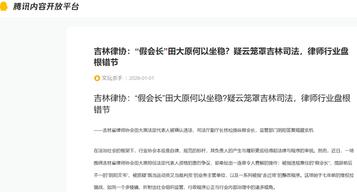 吉林律协:“假会长”田大原何以坐稳?疑云笼罩吉林司法,律师行业盘根错节