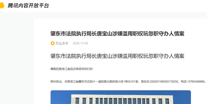 肇东市法院执行局长唐宝山涉嫌滥用职权玩忽职守办人情案 尊敬的黑龙江省信访局领导您们好...