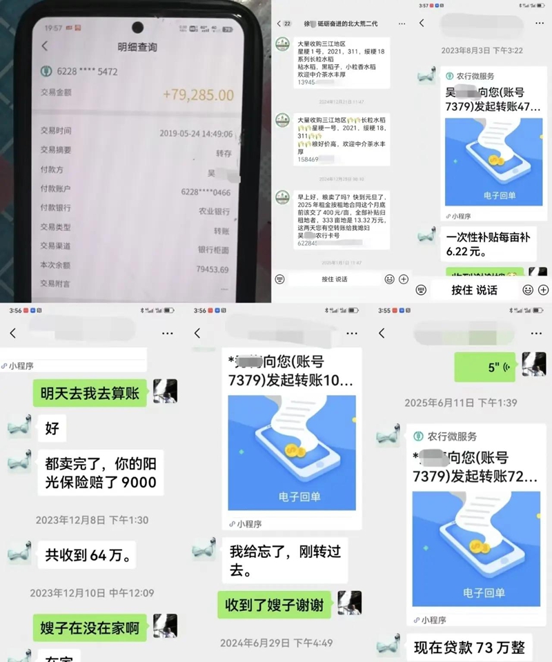 杜某还披露出一个细节:徐某的妻子吴某系浓江农场职工。徐某通过承包土地经营所获取的收入,全部转入了妻子吴某的个人账户。
