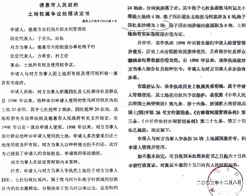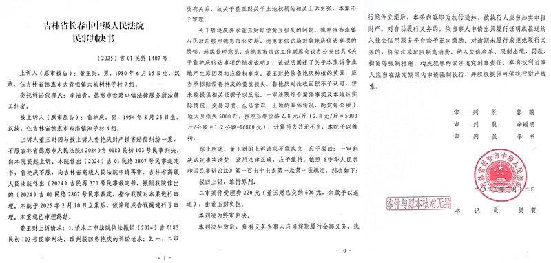 德惠法院依据政府文件判决村书记赔偿