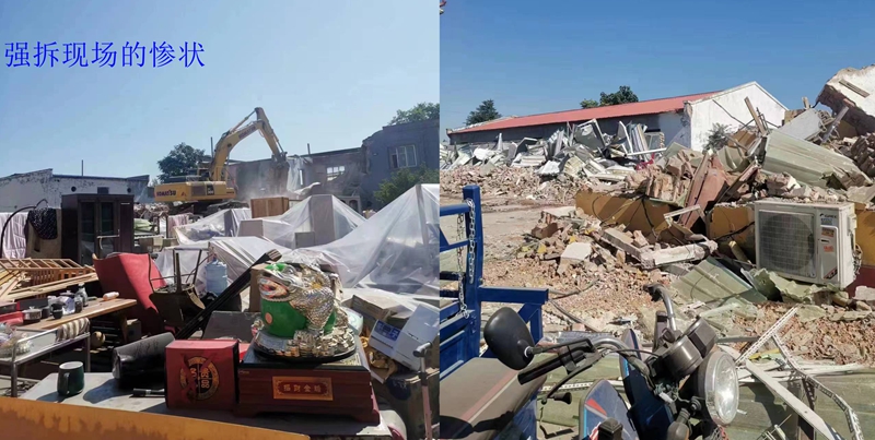2023年,我一直没有接到通知,镇政府也没有公告,却突然来一帮人把门口堵上了,不让出进,工业园区里面住了上百人,他们愿意配合拆迁,在没有达成任何拆迁协议的情况下,在2023年6月20号,我们厂子建筑物都被暴力强拆了。当时,他们还打伤了好几个人,就连几十户人家里的物品财产,都没有拿出来。