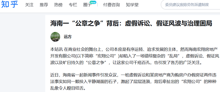 近日,海南省一起新闻事件引发众议,一桩虚假诉讼和某房地产商为购房户办假房证两件违法事实如同一颗投入平静湖面的石子,激起了层层涟漪,背后牵扯出的“宏翔公司”的种种乱象令人瞠目结舌。