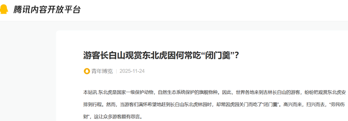 本站讯 东北虎是国家一级保护动物,自然生态系统保护的旗舰物种。因此,世界各地来到吉林长白山的游客,纷纷把观赏东北虎安排到行程。然而,当游客们满怀希望地赶到长白山东北虎林园时,却常因虎园关门而吃了“闭门羹”。高兴而来,扫兴而去,“劳民伤财”,这让众多游客颇有怨言。
