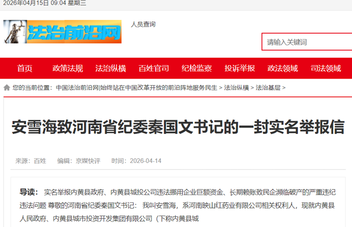 企业巨额资金遭强借却久借不还!安雪海愤然致信河南省纪委秦国文书记实名举报