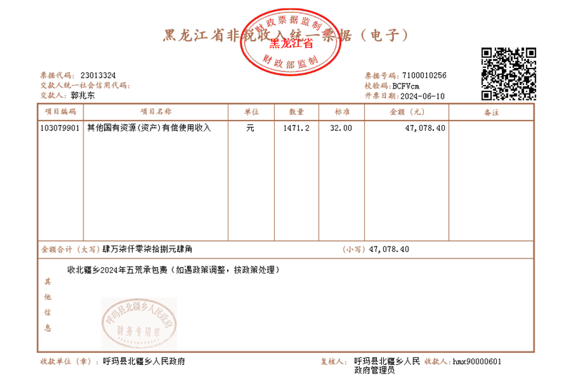 2024年,其与北疆乡政府签订了《国有土地有偿使用承包合同书》,签约面积、缴费面积均为98.08公顷,当年实际耕种约67公顷,因内涝未种部分亦属正常耕作轮休 。